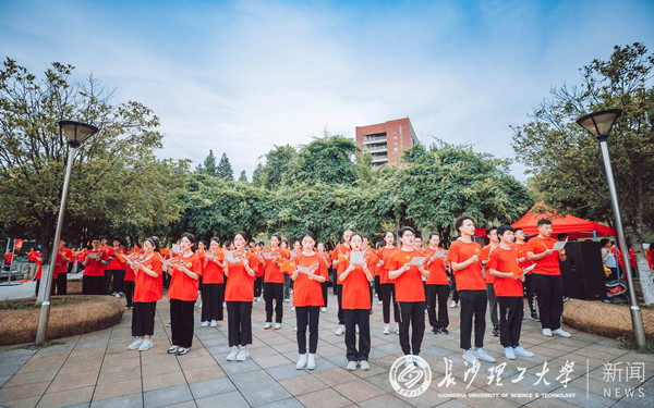 《红船,从南湖起航》《沁园春·长沙》《七律·长征》《七律·人民解放军占领南京》《水调歌头·重上井冈山》……云影湖畔,千名身着红色文化衫的学生精神振奋,齐声诵读红色经典,礼赞百年历程,把在场观众带回了火红岁月,从红色经典中领略了百年党史的波澜壮阔。朗朗诵读声整齐有力、气势磅礴,集中展现了长理学子信仰坚定,在党史中汲取精神力量。