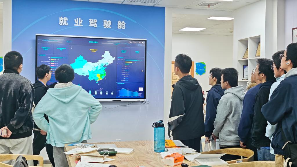 讲解员从学校整体就业工作布局切入,介绍了我校创新创业与就业工作的开展情况,实地体验了“就业驾驶舱”大数据平台,通过可视化数据了解各专业毕业生的就业流向与发展趋势。AI远程面试间也吸引了不少同学驻足体验,大家纷纷表示,这些智能化、可视化的就业辅助工具让他们提前感受到求职场景,有助于早做准备、明确方向。