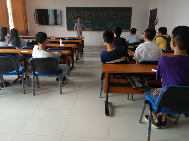 5月22日至5月31日期间,材料学院在新能源大楼1号楼成长辅导室举行了考研经验分享会,2017届考研学霸们纷纷传授经验,40余名大三学生到场进行交流。