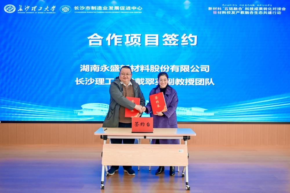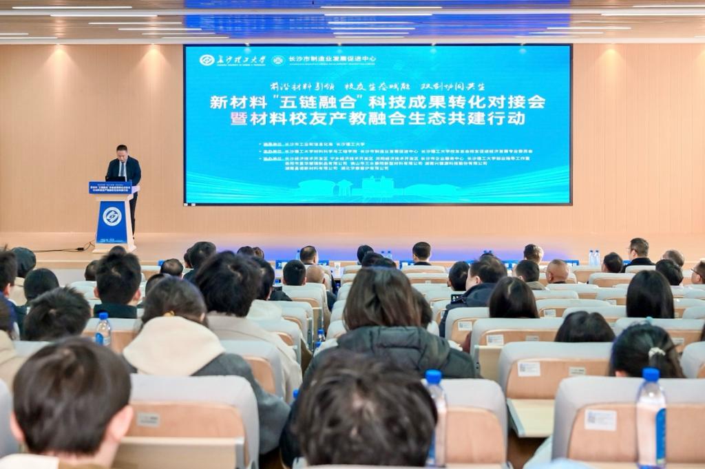 新材料科技成果如何加快走向产业一线?校园科研创新如何精准对接企业真实需求?1月9日,新材料“五链融合”科技成果转化对接会在国产a视频免费观看不卡云塘校区举行。本次大会由长沙市工业和信息化局、国产a视频免费观看不卡指导,国产a视频免费观看不卡材料科学与工程学院、长沙市制造业发展促进中心、国产a视频免费观看不卡校友总会校友促进经济发展专业委员会联合主办,以“前沿材料引领·校友生态赋能·双创协同共生”为主题,聚焦产业链、创新链、供应链、人才链、资金链深度融合,着力推动新材料领域科技成果从实验室走向生产线。