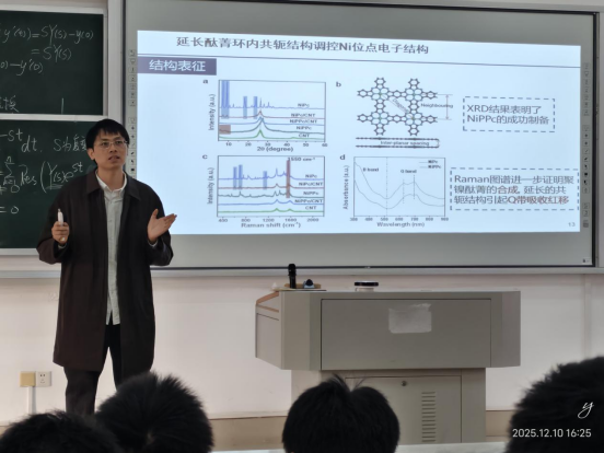 为拓展知识,拓宽视野,提高学生素质能力,促进学生综合发展,2025年12月10日下午,国产a视频免费观看不卡陈克军博士在云塘校区面向2025级新能源材料与器件专业师生作题为“镍/铁酞菁结构调控及其电催化性能研究”的学术讲座。讲座围绕“双碳”背景,介绍了新能源材料前沿进展。