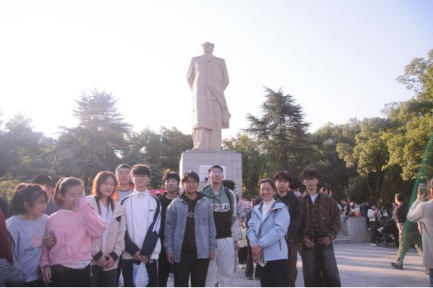 下午两点半,同学们与班主任戴翠英老师一同乘车前往岳麓山。大家精神饱满,满怀期待。下车后,同学们结伴步行,经登高路抵达岳麓山南门。在毛泽东同志青年艺术雕塑前,班级拍摄了第一张集体合影,为活动留下珍贵纪念。