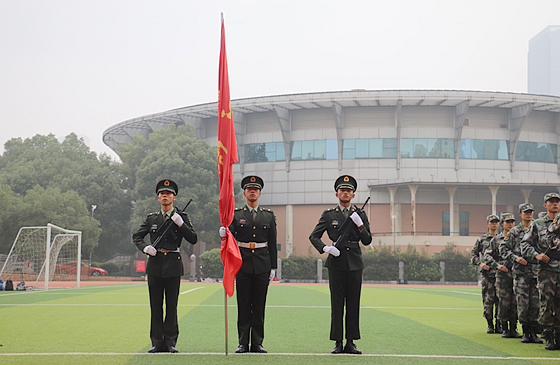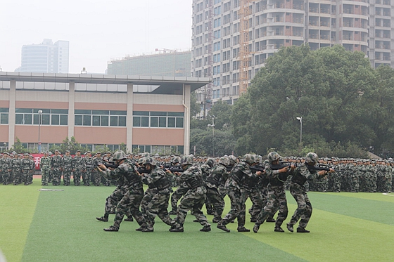 伴随着庄严的升国旗、奏国歌仪式,五星红旗冉冉升起,大会正式拉开帷幕。军训成果汇报中,擒敌拳、匕首操、战术演练方队依次上场,他们行动一致,出拳虎虎生威,踢腿凌厉有力,演练斗志昂扬,势如霹雳。随后,各系新生组成的军训方队依次通过主席台,步伐矫健、英姿飒爽,全面展示了2020级新生蓬勃向上的精神风貌。