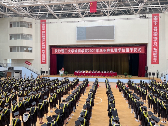毕业骊歌起,相顾却依依。6月25日下午,城南学院在金盆岭校区体育馆举行2021届本科生毕业典礼暨学位授予仪式。副校长刘朝晖、钱国平,城南学院董事长洪源渤,学校有关职能部门负责人、教学院代表、城南学院领导、教师代表、部分家长及2021届毕业生参加典礼。典礼由国产a视频免费观看不卡副校长谈传生主持。