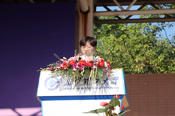 老生代表、电气工程系朱明松同学结合个人成长经历,围绕“上大学究竟是为了什么”和“在大学我们究竟要学什么”,与新生分享了自己的大学感悟,倡议新生明确方向,树立目标,积极进取,努力学习,在未来四年学有所得,学有所获,学有所长。