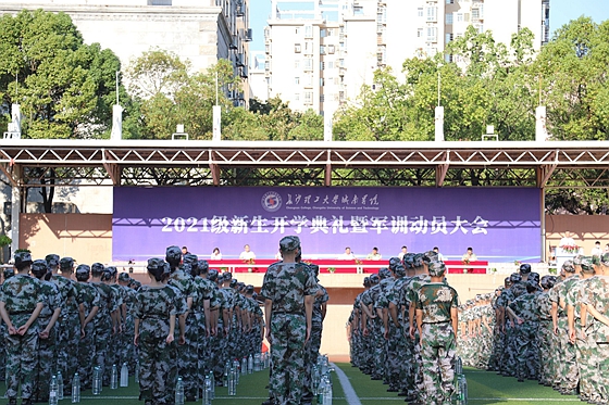开学典礼结束后,2021级全体新生立即整肃列队,正式投入军训。