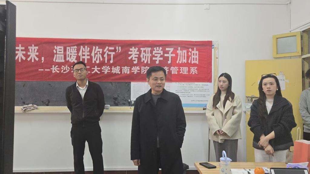 为切实关怀备战考研的学子,有效缓解备考压力,传递系部的温情与殷切期许,助力学予以最佳状态奔赴考场,12月11日下午,国产a视频免费观看不卡城南学院经济管理系精心策划并开展“研梦筑未来,温暖伴你行”考研慰问活动。学院党委书记施一满,经济管理系系主任朱骞,辅导员马泽龙、林安妮及学生干部代表一同走进考研自习室,为全体备考学子送上暖心关怀与美好祝福。