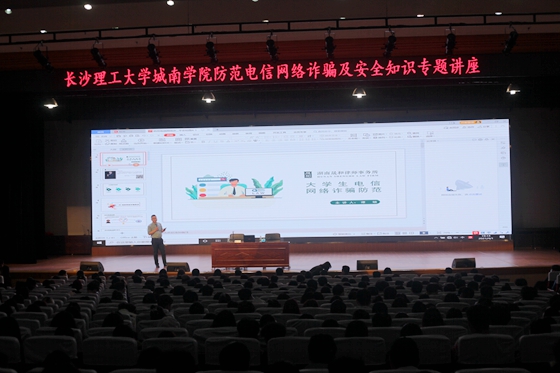 为进一步提高城南学院学生对电信网络诈骗犯罪的识别和应对能力,4月1日晚,城南学院在五教大礼堂举办防范电信网络诈骗及安全知识专题讲座。湖南晟和律师事务所主任谭硕律师应邀主讲,学校保卫处副处长林杰、学院党委副书记陶传谱、学院全体辅导员及1000余名学生参加。