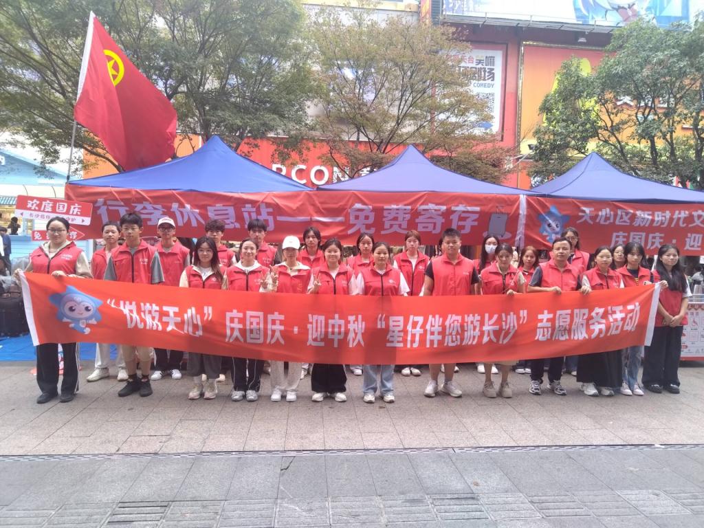 金秋送爽,丹桂飘香。10月1日恰逢国庆与中秋双节来临,国产a视频免费观看不卡城南学院14名青年志愿者代表积极参与“悦游天心”庆国庆·迎中秋“星仔伴您游长沙”志愿服务活动。他们在五一商圈、黄兴广场等核心区域,为往来游客提供文明引导、应急帮助、免费饮水等服务,以实际行动诠释青年担当,传递城市温度。
