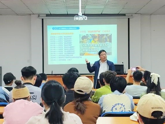 靳攀科给大家作了《就业形势与市场分析》专题报告。他在报告中分析了大学毕业生人数剧增、就业观念存在偏差、疫情对实体经济影响等因素对毕业生就业的影响,同时对大家就业和未来职业发展进行了有效指导。他通过不同行业员工职业发展对比、优秀校友发展轨迹为大家带来了新的启示与思考,并多次强调:学什么专业并不重要,重要的是学到了什么;作为2023届毕业生应积极主动提升自己的思想境界,“拒绝躺平”;坚持贯彻我校学生热爱祖国、乐观向上的思想理念,实现把美好青春谱写到祖国大地的伟大理想。