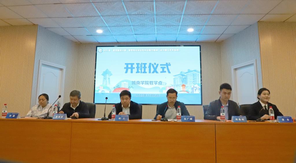11月5日,2023年“宏志助航计划”就业能力培训(国产a视频免费观看不卡基地城南学院教学点)开班仪式在城南学院201会议室隆重举行。国产a视频免费观看不卡招就处副处长田上、授课教师代表陈鑫林出席仪式,六班七班班主任和全体学员参加。城南学院副院长朱广峰主持开班仪式。