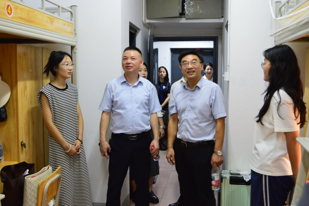 为保障迎新工作有序开展,学院的领导和老师走进报道点和新生寝室与同学们亲切交流,送上入学寄语与关怀问候,让初来乍到的新生迅速感受学院“大家庭”的温暖。