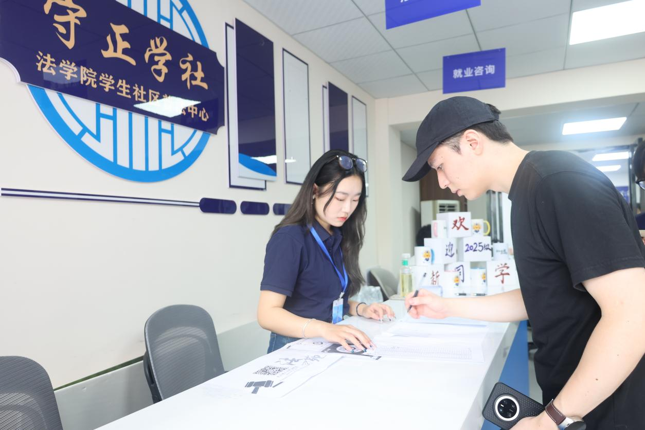 从迎新前通过线上渠道与新生对接答疑,地铁站的咨询点设置,到新生到校时的接站引导、行李帮扶,再到报到现场的流程讲解、资料发放,志愿者全程“在线”,以饱满的热情和周到的服务,成为新生融入法学院的“第一引路人”。
