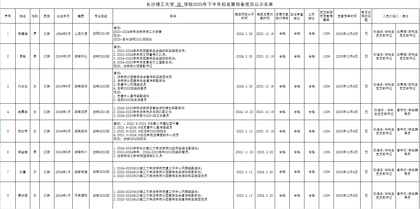经支部委员会研究,并请示上级党委同意,拟接收李建雄等8名同志为中共预备党员。现将李建雄等8名同志的基本情况公示如下: