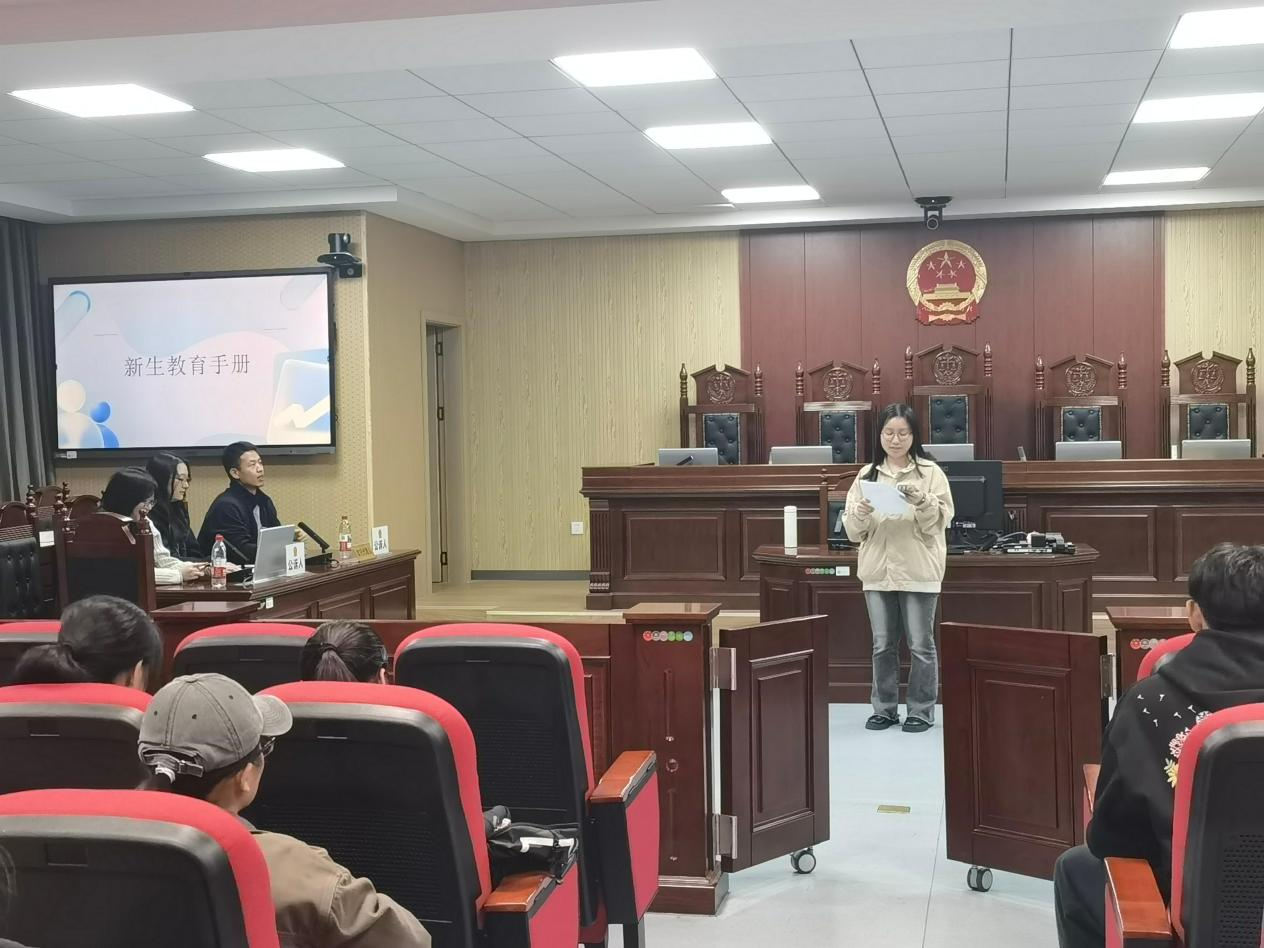 为帮助2025级研究生更快适应校园生活、掌握学校规章制度,9月26日下午,法学院在4教模拟法庭举办校纪校规和安全教育学习活动。研究生辅导员曾宇欣和2025级全体研究生参与,班长彭镇键主持。
