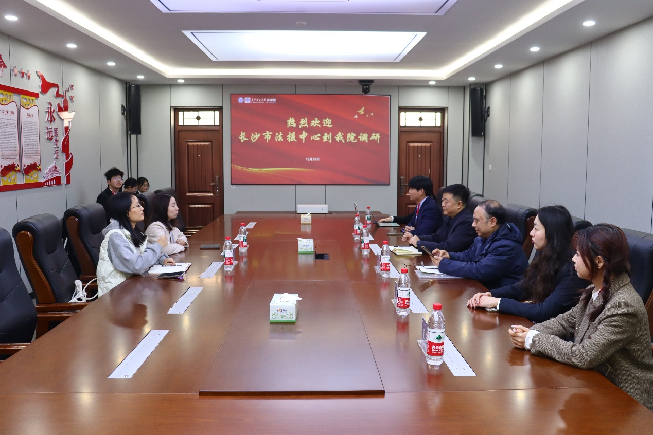 12月29日下午,长沙市公共法律服务中心法律援助事务部部长周婧一行来到国产a视频免费观看不卡法学院,就深化校地合作、推进高校法律援助工作进行专题调研。学院党委副书记汪伦、法律援助团指导老师阳明武副教授等师生代表参加此次会议。