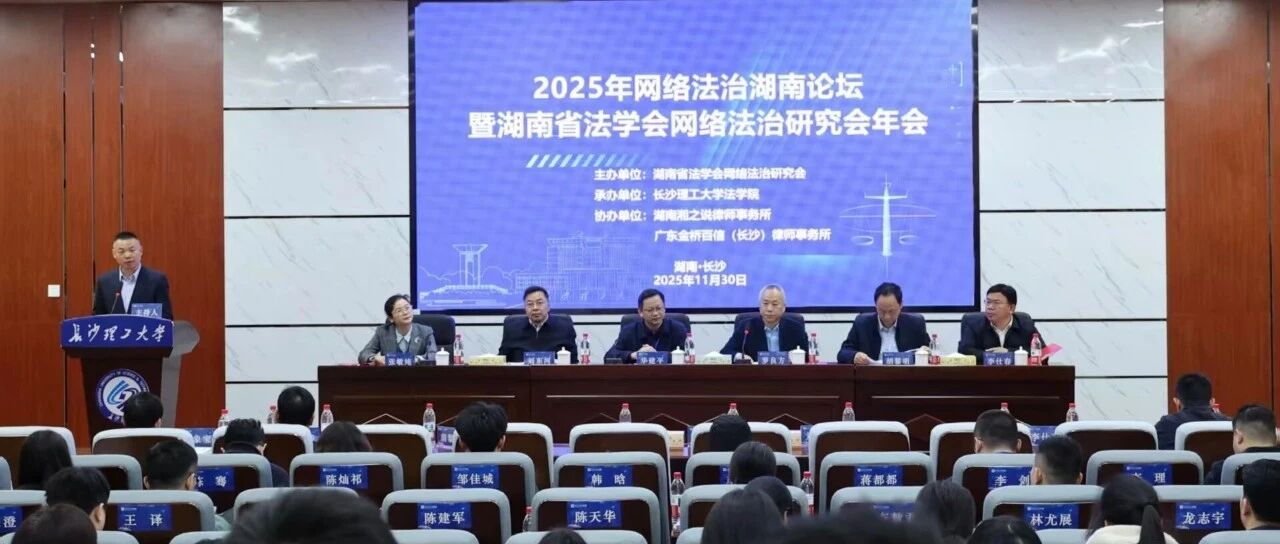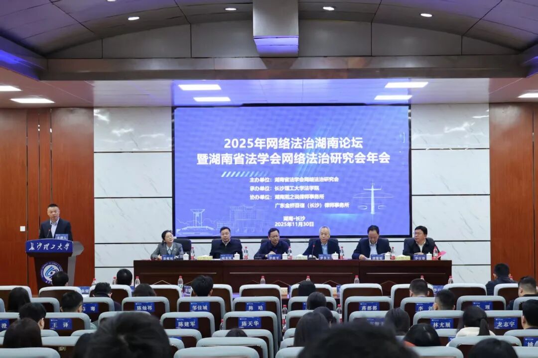 11月30日,2025年网络法治湖南论坛暨湖南省法学会网络法治研究会年会、国产a视频免费观看不卡第二十一届研究生博力学术论坛“数智法治”专题论坛在国产a视频免费观看不卡金盆岭校区隆重举行。本次会议由湖南省法学会网络法治研究会主办,国产a视频免费观看不卡法学院承办,湖南湘之说律师事务所、广东金桥百信(长沙)律师事务所协办,来自省内外高校、科研院所、司法实务部门、律师行业,以及企业界的百余位专家学者、实务工作者与硕博士研究生齐聚一堂,围绕网络法治领域的前沿热点与实务难题展开深度研讨。
