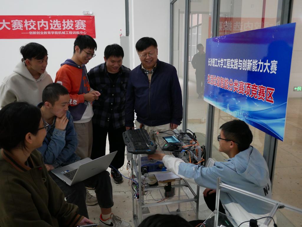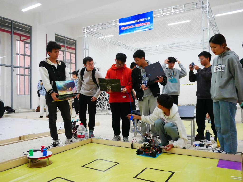 大赛采用校级初赛、省级复赛、全国总决赛三级赛制,来自全校6个学院62支团队180余名本科生参与本次智能配送无人机、智能物流搬运车、生活垃圾分类和新能源车等四个赛项校级竞赛。