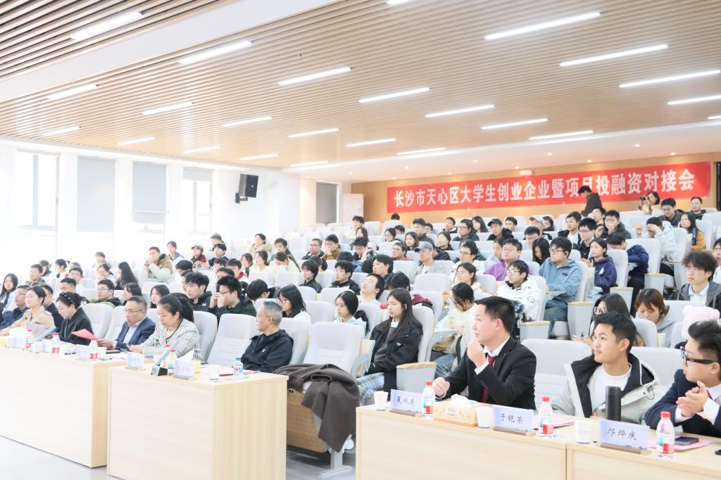 为深入贯彻落实省委、省政府关于支持大学生创业“七个一”举措,12月9日下午,长沙市天心区科技局、区人社局、区金融事务中心与我校大学生创业指导工作室联合举办的大学生创业项目投融资对接会在云塘校区举行。湖南省大学生创业投资基金负责人、湖南麓山科技投资有限公司总经理李岳,天心区金融事务中心党组书记、主任周雅娴,副主任向姣姣,区就业服务中心副主任龚建国,我校卓越工程师学院党委书记杨晨,交通学院副院长(主持工作)吕松涛,交通学院党委副书记任志祥,创业就业指导处李小军及师生代表等150余人参加活动。