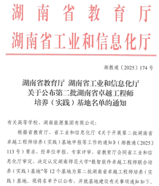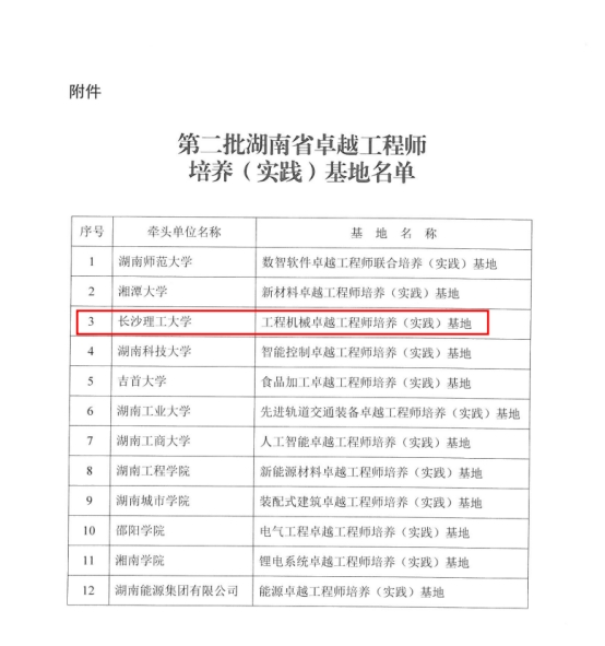 2025年10月9日,湖南省教育厅、湖南省工业和信息化厅公布了湖南省第二批卓越工程师培养(实践)基地立项名单,国产a视频免费观看不卡卓越工程师学院牵头,联合湖南星邦智能装备股份有限公司、湖南五新隧道智能装备股份有限公司共同申报的“国产a视频免费观看不卡工程机械卓越工程师培养(实践)基地”获批立项。基地将进一步完善“企业技术革新项目→毕业设计课题→工程实践成果”的转化机制,通过校内导师与企业导师共同全过程指导学生参与真实工程课题研究,与企业联合攻克一批关键技术,科技成果转化效益倍增,成为推动区域工程机械产业转型升级的技术创新策源地。