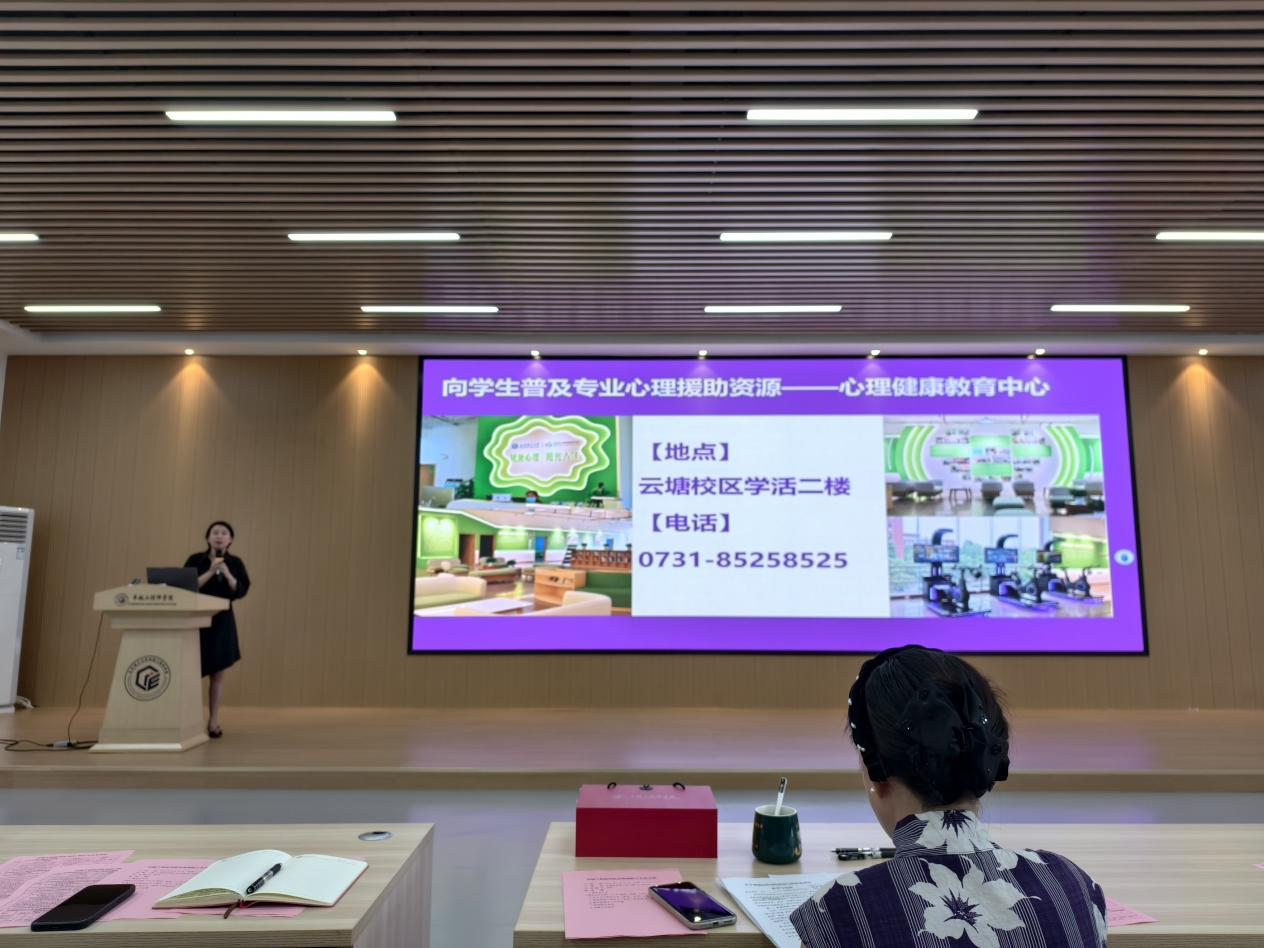 其次,她重点介绍了学校与学院两级完善的心理援助资源体系。详细说明了学校心理健康教育与咨询中心的预约方式、服务范围以及紧急情况下的求助渠道。同时,也向老师们明确了学院层面的支持网络与联动机制,确保每一位导师和班主任都能清晰知晓当学生遇到心理困境时,如何快速、有效地启动校院支持流程,为学生构筑起坚实的心理安全防护网。