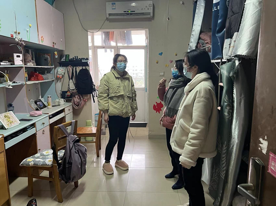 走访寝室期间,领导老师与学生们进行深入交谈,询问他们的相关情况及入住事宜,并在学习和生活方面给予一些建议,以便他们能够更快地从寒假中调整过来适应新学期。任艮丰强调了以下几点注意事项:一是要做到疫情防控不放松,严格遵守学校的日常管理、校门管理和活动管理,配合学校每天监测体温;二是要防范日常生活安全隐患,注意财产和人身安全;三是要调整作息与心态,制定学习计划,在新学期全方面提升自己,锤炼过硬本领。辅导员也来到本年级同学寝室,与同学们亲切交谈,了解同学们的校情况、寝室卫生和新学期准备工作等情况,并嘱咐大家在宿舍里要相互关心、相互帮助,以崭新的精神面貌投入到学习生活中。