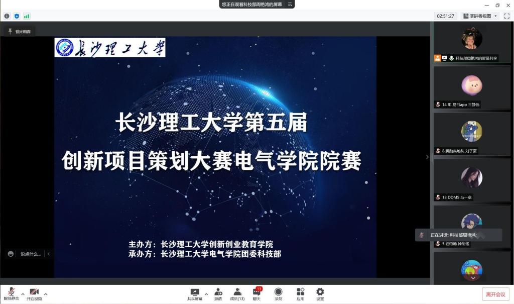 4月12日晚,第五届创新项目策划大赛电气学院院赛在腾讯会议进行线上答辩。创新创业教育办公室主任常晗、电气学院电力系周腊吾、喻锟,自动化系贺勇、智电系杨鑫、贺科学六位老师出席评审,电气学院团委书记田孟萍、各项目团队和观众近100名学生参加。
