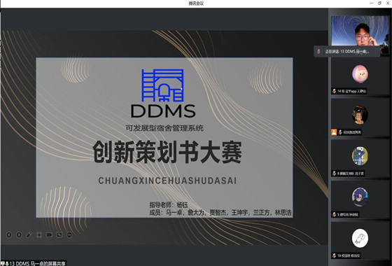 此次线上答辩评审分三个会场同步进行。各团队有序展示项目PPT,严格遵守比赛要求,认真回答老师问题,虚心听取老师意见。各评委老师针对不同项目指出了项目存在的缺陷和不足,提出了改善建议,并给予鼓励。评审中,部分项目缺少市场调研,老师们指出对此问题,应制定相应商业计划、研究服务对象方法,进一步分析需求、考虑成本;还有部分项目应该落实市场需求,不应只是以兴趣确立选题。除了项目内容,评委老师对ppt制作质量和答辩语言的流畅度也提出了要求。经过一下午激烈的角逐,比赛圆满落幕,评委老师对各项目组进行了打分。