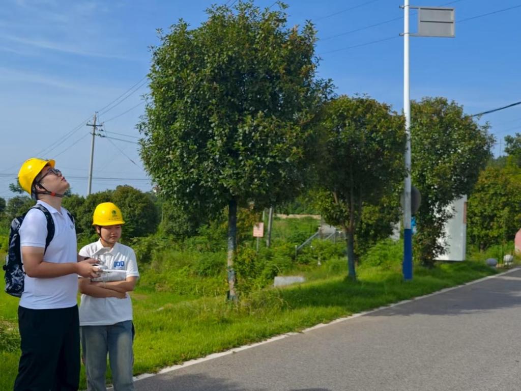 7月17日上午,红仑供电所师傅佩戴安全帽,向实践队员细致讲解无人机巡线原理与安全规范。随后,队员们在师傅指导下,操控搭载高清摄像头与智能识别系统的无人机,沿输电线路巡航。从导线弧垂异常,到树障隐患,队员们紧盯无人机回传画面,学习精准识别设备缺陷。面对田野沟壑、山林陡坡等复杂地形,无人机展现出强大适应性,以高效巡航速度,将原本人工需数小时的巡检路段,压缩至几十分钟完成“全面体检”,让队员们切实感受到科技对运维效率的质的提升。