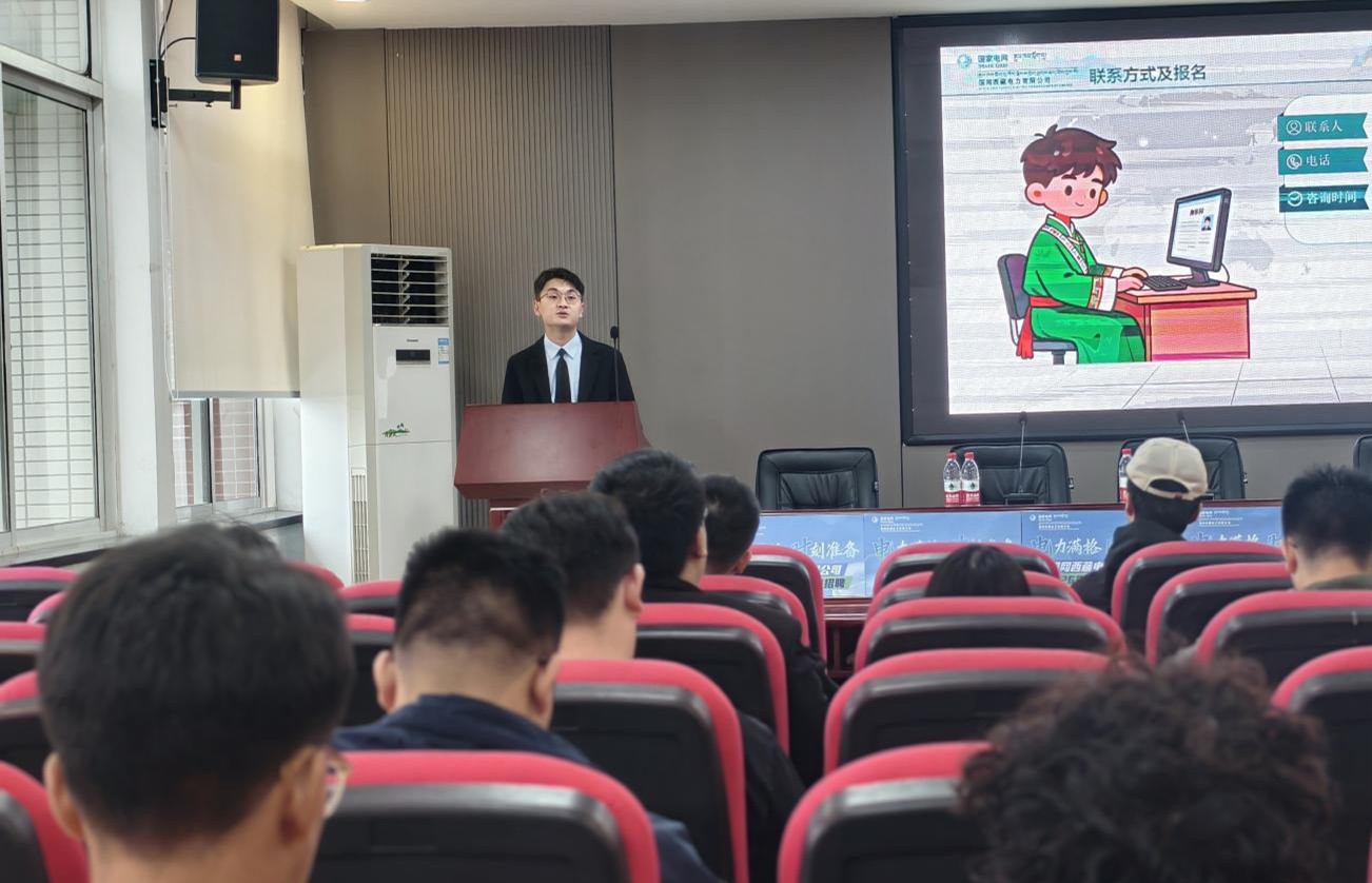 2025年10月19日,国网西藏电力有限公司2026年校园招聘“电力满格·时刻准备”宣讲会在国产a视频免费观看不卡电气与信息工程学院成功举行。值得一提的是,此次宣讲会是湖南省内唯一的国网西藏电力专场招聘会。会上,迎来了一位特殊嘉宾——国产a视频免费观看不卡2021届校友、现任国网阿里供电公司人力资源部员工管理初级师的杨帅军,这位从株洲走出的“90后”向学弟学妹们讲述了他在雪域高原4年快速成长的动人故事。