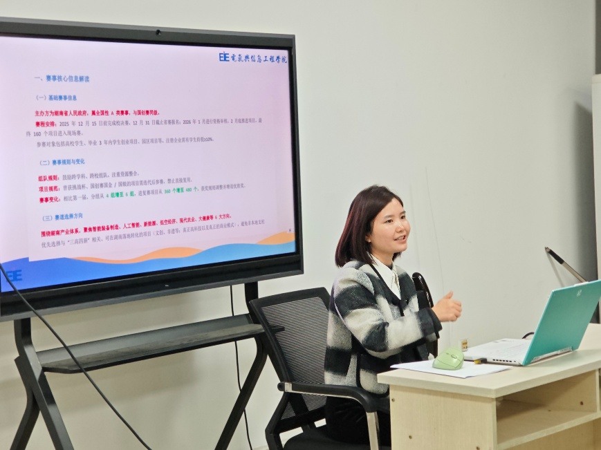 在讲座最后,楚艳鸽鼓励同学们主动关注赛事动态,积极组队参与,勇于尝试、不怕失败。“创新需要勇气,赛事铸就阶梯”,她希望新生们能以赛事为媒,以创新为帆,在大学阶段不断探索、持续成长,在实践中学真知、长才干。