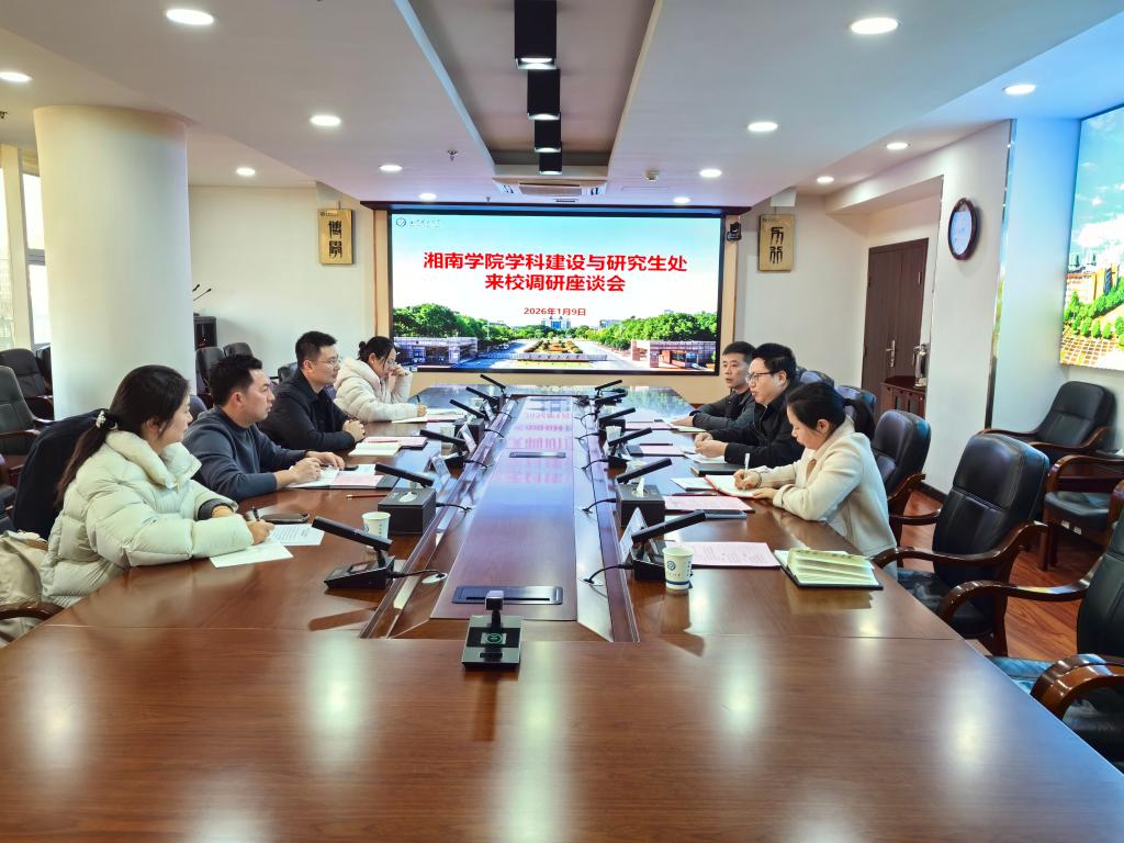 1月9日上午,湘南学院学科建设与研究生处处长雷昌斌一行4人到访我校,就“双一流”学科建设与硕士点建设等工作开展座谈调研。发展规划处、研究生院相关负责人参会…