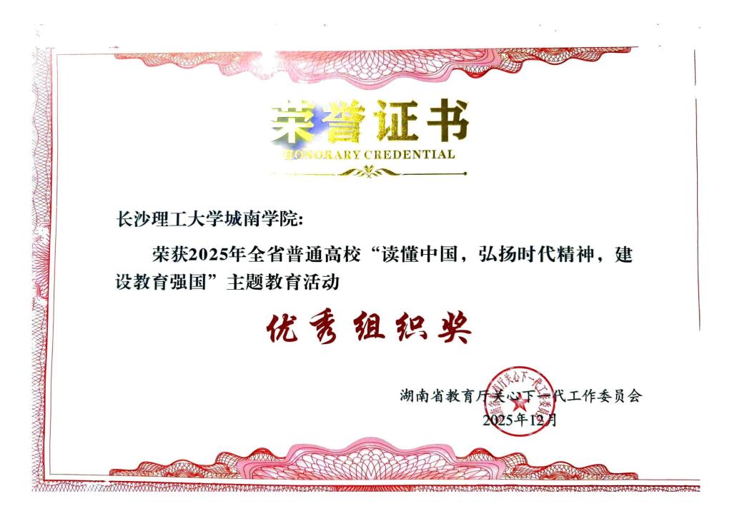 省委教育工委于12月上旬下发《关于公布2025年全省普通高校“读懂中国”主题教育活动优秀组织奖和作品奖评审结果的通知》,我校报送的舞台剧《铣刀情》荣获教育部关工委舞台剧优秀奖、省教育厅关工委舞台剧特等奖,征文《弹痕里的赤子勋章》荣获教育厅关工委征文一等奖,微视频《世纪工程背后的水利人杨南安》荣获省教育厅关工委微视频一等奖。我校获评省教育厅关工委优秀组织奖,城南学院获评教育部关工委和省教育厅关工委优秀组织奖。