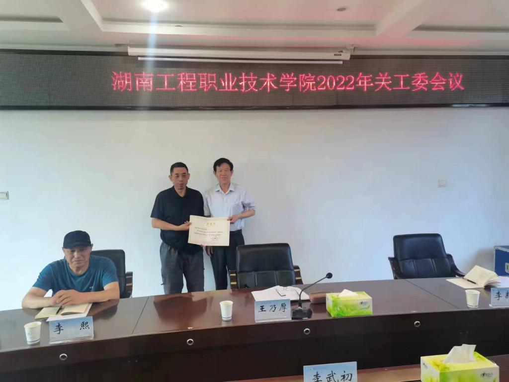 王乃厚代表省教育系统关工委向工程职院颁发2021年全省高校“读懂中国”主题活动“优秀组织奖”证书。
