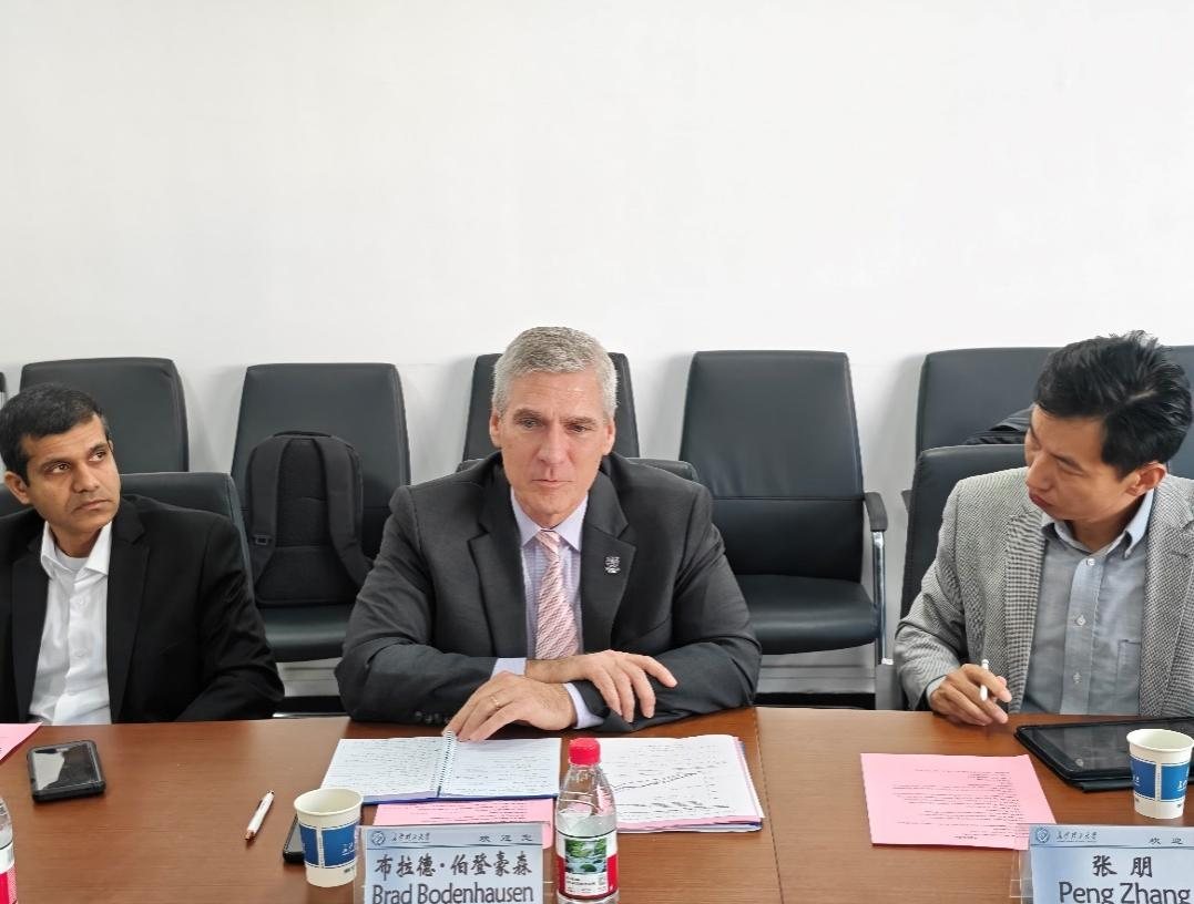 11月21日,美国密苏里州立大学副校长布拉德·伯登豪森率代表团访问我校,双方在金盆岭校区举行合作会谈。校党委委员、副校长张军辉出席会议,对外合作交流处及计算机学院相关负责人和教师代表参加会议,会议由对外合作交流处副处长姚宇主持。