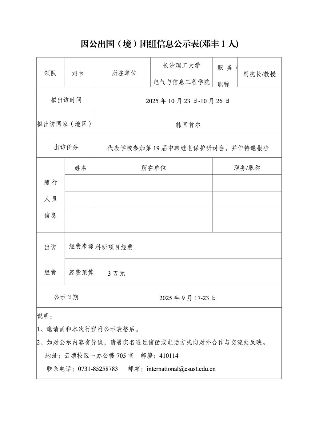 因公出国(境)团组信息公示表(邓丰1人)