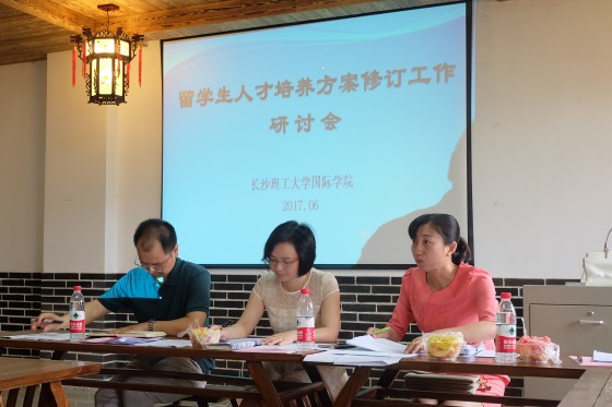 6月16日下午,国际学院在留学生公寓一楼文化室召开2017年来华留学生本科人才培养方案修订研讨专题会议。学院书记陈若玲、常务副院长陈瑜、副书记段胜峰、教务处教研科科长龚艳出席。院教学督导专家、培养方案修订执笔老师及学院教务办全体人员参加研讨。会议由院长助理秦卫星主持。