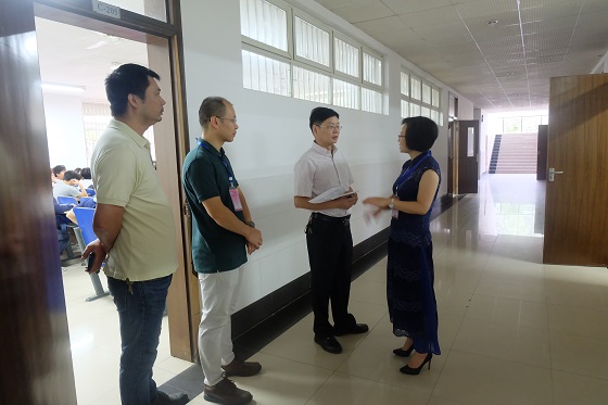 今天是国际学院学生开学上课第一天。国际学院院长陈瑜带领副书记吴振华、院长助理秦卫星以及党政办、教务办和学工办全体工作人员深入中外合作办学学生和留学生的课堂,检查开学第一天学生上课的情况。2016级土木工程中外合作办学的学生的第一节课在C-205上《电工电子基础》。2014级赤道几内亚土木专业留学生的第一节课在工三B-205上《桥梁检测与加固》。课上任课教师和全体学生饱满的精神面貌以及热烈的课堂互动气氛令陈院长倍感欣慰。副校长谈传生、组织部部长齐路良和教务处副处长王奇先后来到国际学院学生课堂指导工作,对授课教师和学生的课堂表现给予了充分肯定。