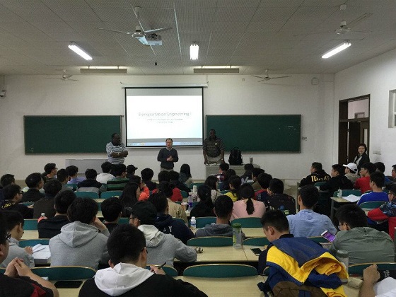 该批引进课程共计四门,分别是2015级第十一、十四门引进课程Fluid Mechanics与Special Topics in Engineering,2016级第六、七门引进课程Structural Analysis I与Transportation Engineering I,由来自UTC的Joseph Onyango Owino教授、Fomunung Ignatius Wobyeba教授、Baoshan Huang教授和Jidong Yang副教授承担,采用英文原版教材,全程英文授课。四门引进课程开课前,学生已在交通、土木和水利学院选派导读教师的带领下完成了12学时的导读课程学习。在为期三周的学习期间,学生将接受高强度的学习任务,并完成2次小考和1次大考。