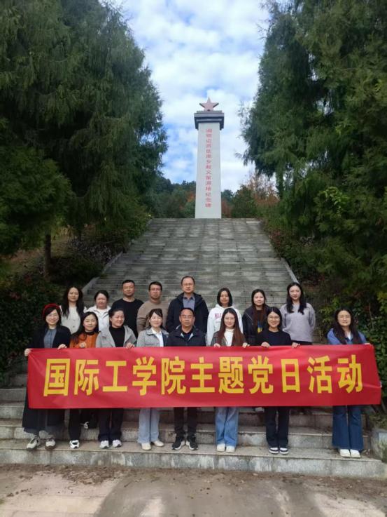 为进一步继承和弘扬革命精神,引导广大党员教师在慎终追远、缅怀英烈的情怀中更好地传承历史文化,增强中华民族的认同感归属感,11月22-23日,国际工学院全体党员赴石门县夹山镇湘鄂边苏区南乡起义策源地旧址、石门抗战纪念园追寻红色记忆,开展“缅怀先烈、砥砺前行”主题党日活动。