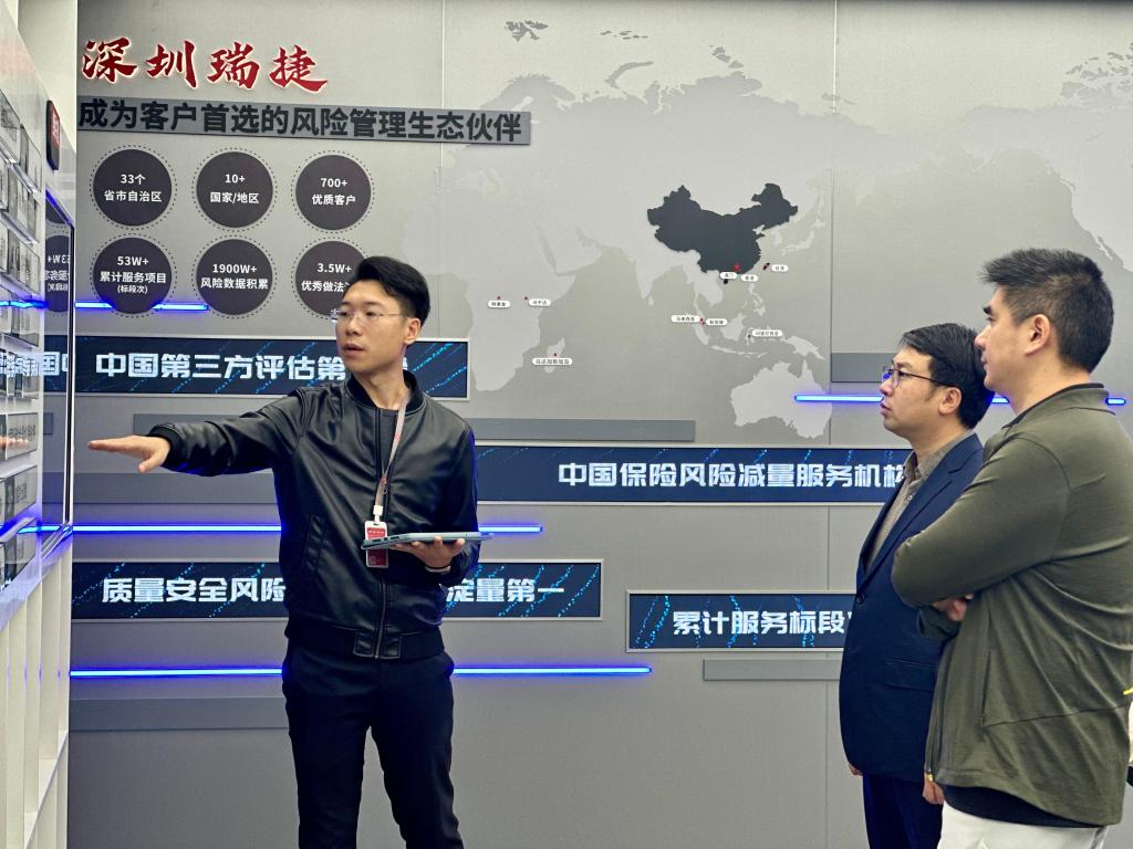 黄黎明一行首站走访了校友范文宏创办的深圳瑞捷技术股份有限公司,参观了企业智能化新办公区与文化展厅,直观感受企业数字化转型成果,并与公司副总裁李亮等领导进行交流座谈。座谈中,李亮介绍了公司发展概况及转型历程,重点阐述了与学校在科研合作方面的坚实基础,以及历年到校招聘的良好成效,表示瑞捷作为国内第三方工程评估行业的开拓者之一、国家高新技术企业,未来将持续深化与学校在人才招聘、科研项目协作、科技创新攻关等领域的合作,携手实现校企协同发展、互利共赢。黄黎明对企业取得的发展成就及校友的创业成果给予高度肯定,并期待深化校企合作,助力学校高素质人才培养。