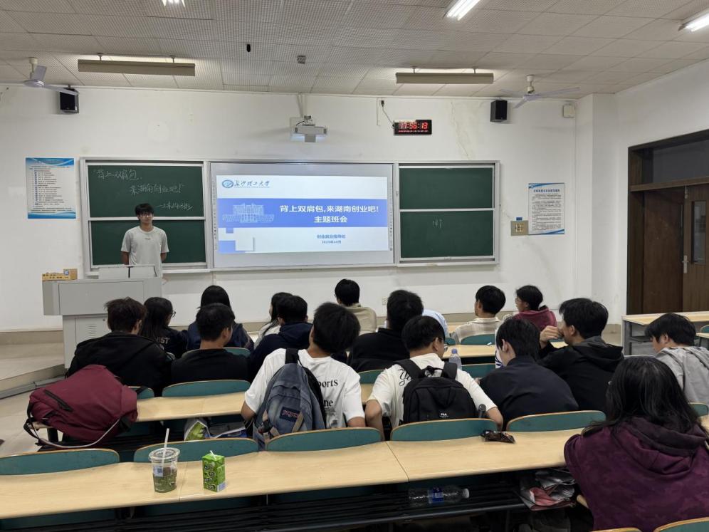 国际工学院举办“背上双肩包,来湖南创业吧!”创业政策主题班会活动