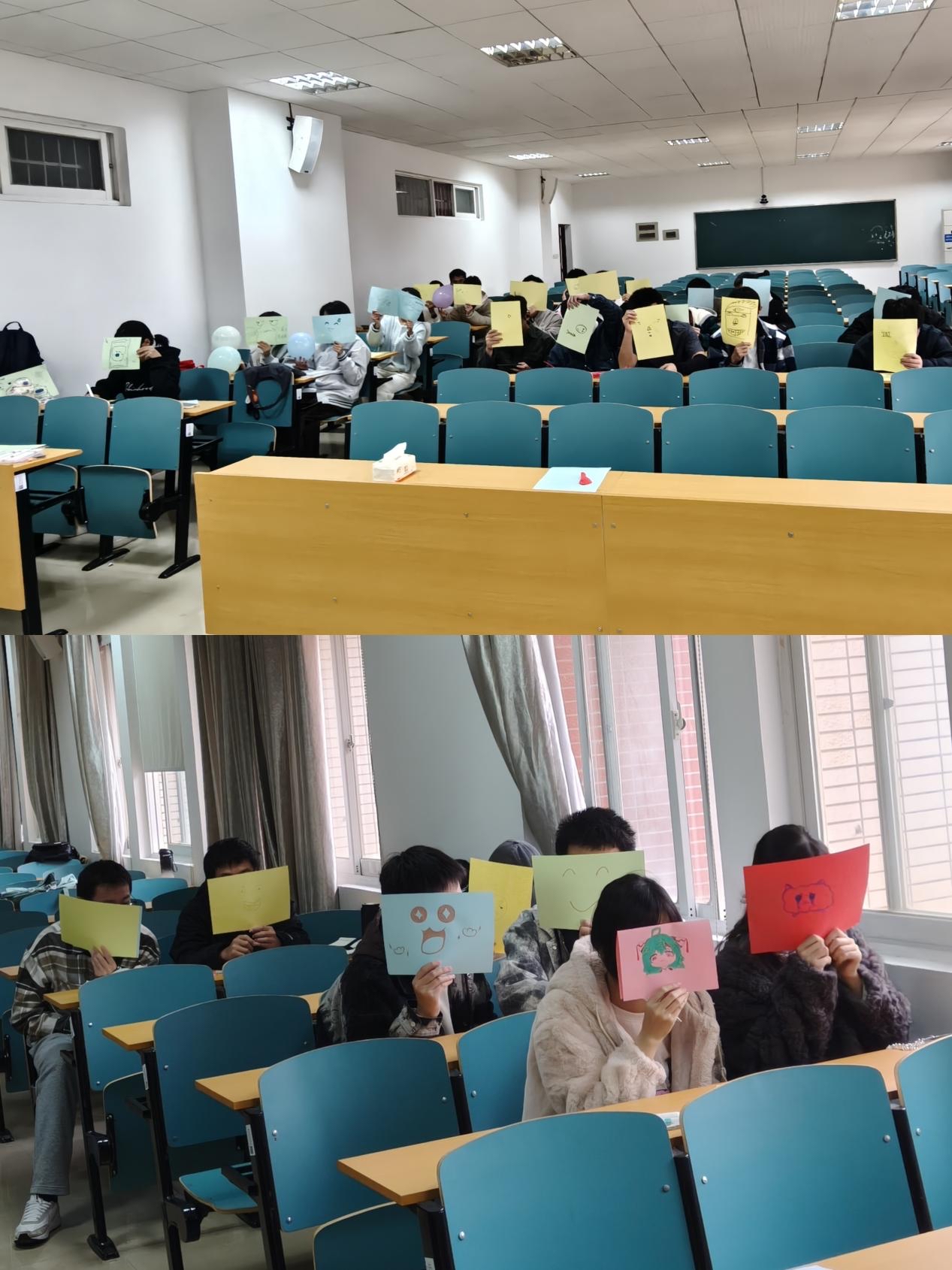 一张写满祝福的手掌画布,一张张遮住脸庞的趣味自画像,一个个被温柔“告别”的压力气球……12月2日,机械2501班的同学们在文科楼A401开展了一场别开生面的班级健心活动。围绕“青春合伙人,同心聚力行”的主题,同学们在互动中倾诉心声,在共创中凝聚温情,完成了一次心灵与情感的深度联结。