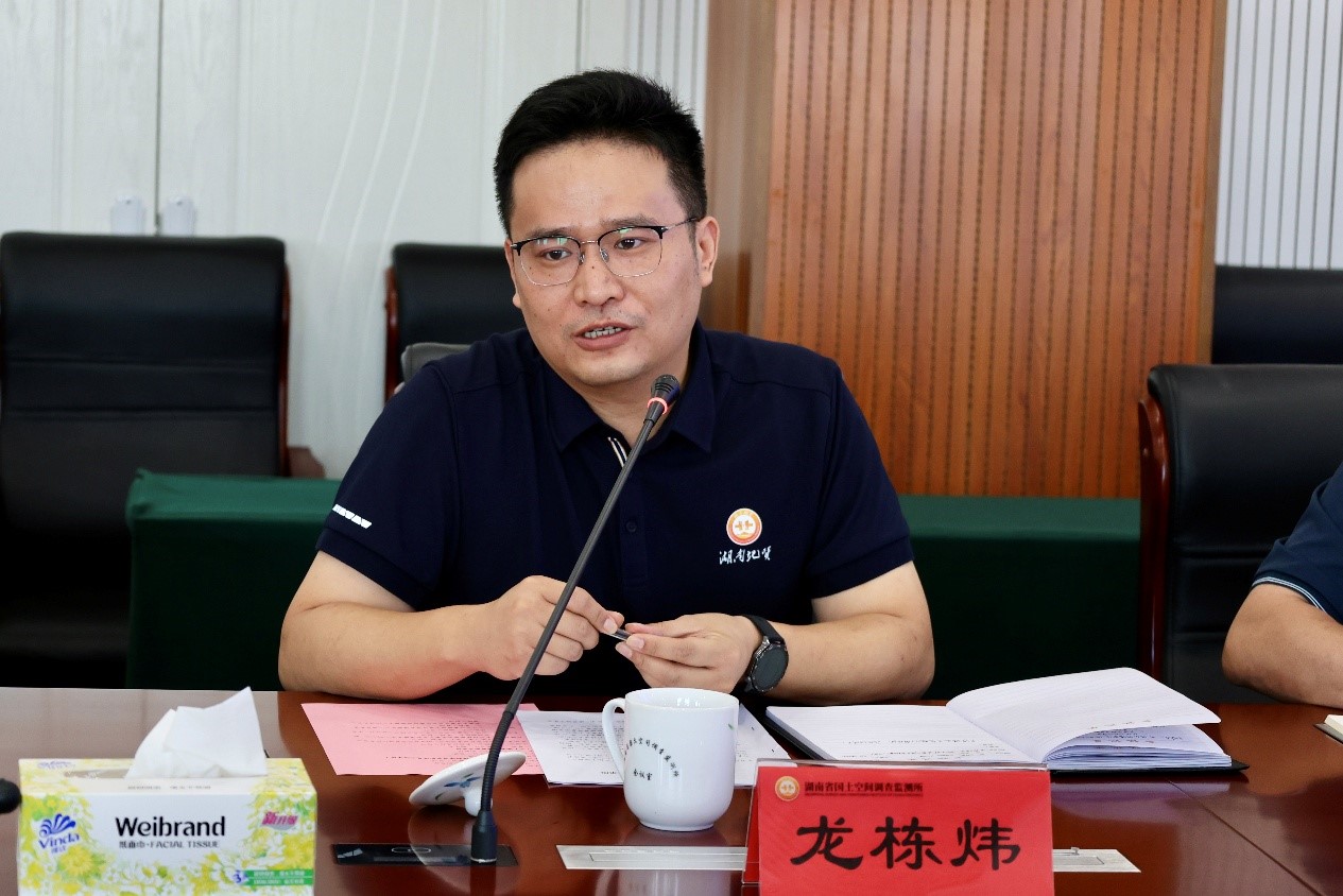 为深化科研协作机制,探索产学研融合新路径,8月26日,国产a视频免费观看不卡航空工程学院党委书记文丽丽、副院长邢学敏率队赴湖南省地质院国土空间调查所座谈交流,测绘工程系主任刘斌、遥感地信系主任许珊、测绘工程系副系主任朱珺、学科秘书蔡杰华随行,湖南科技大学地球科学与空间信息工程学院韩用顺副院长等人共同参与了此次交流会。