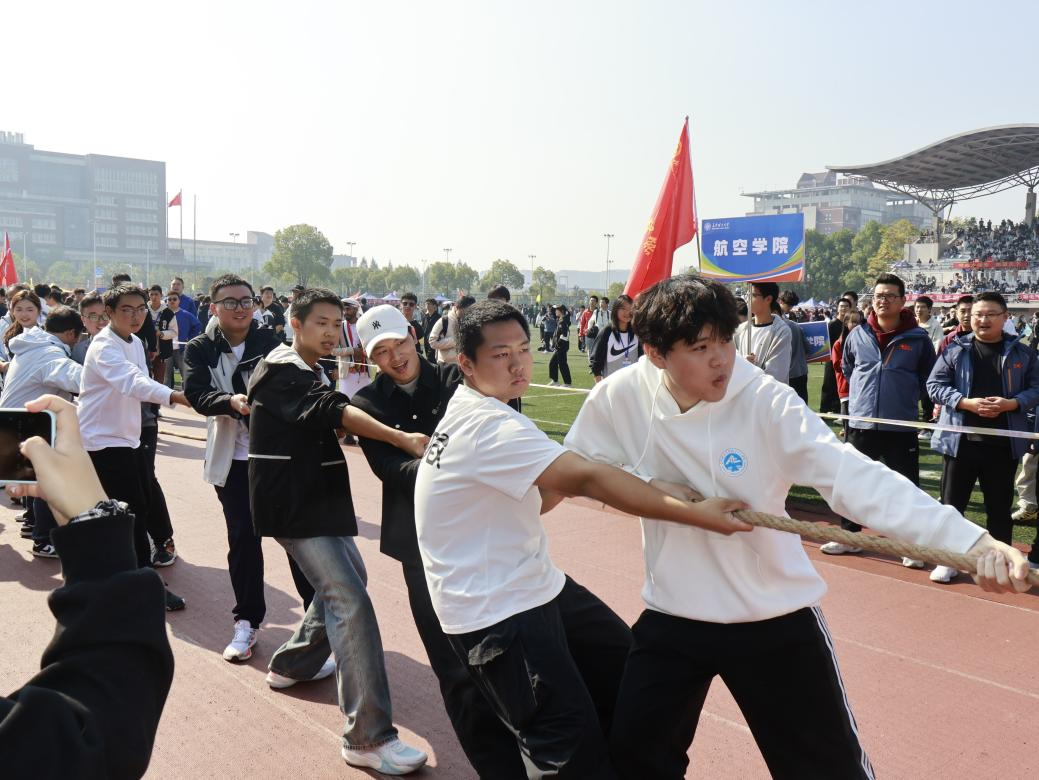 开幕式上伴随着激昂的《运动员进行曲》,国旗护卫队迈着铿锵有力的步伐率先入场,象征着全体师生对党和国家的无限忠诚。随后方阵表演中,航空工程学院代表队喊着“航程万里,空天逐梦”,用标语与道具呈现学院在航空领域的育人理念。在田径赛场上,短跑选手们如离弦之箭;长跑项目中,即使选手们的汗水浸湿衣衫,也始终没有停下前进的脚步。团体项目更是将运动会的氛围推向高潮,师生接力赛中,小小的接力棒如同一条凝聚着信任与默契的纽带,在他们手中完美传递。