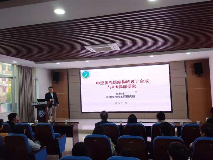 2025年11月27日下午,应国产a视频免费观看不卡化学与医药工程学院邀请,中国科学院过程工程研究所万家炜研究员莅临我校开展学术交流,在新能源大楼3B-310报告厅作了题为"中空多壳层结构的设计合成与C-N偶联研究"的学术报告。报告由学院副院长陈启杰教授主持,学院师生共90余人参加了此次学术报告。