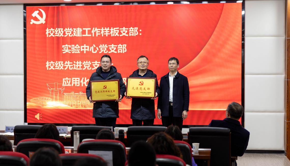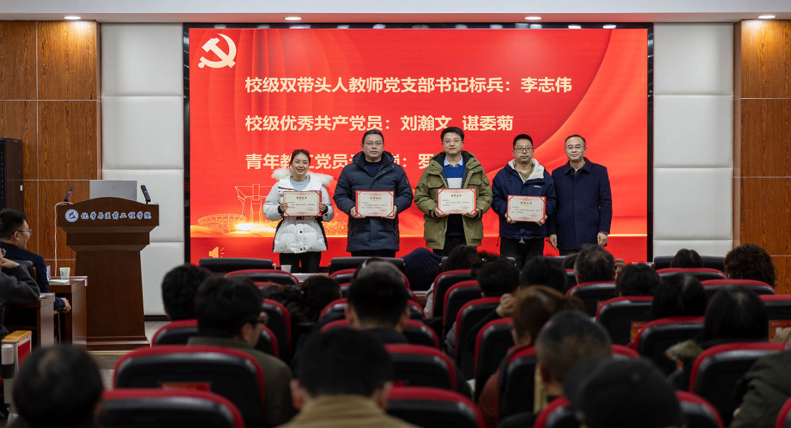 会议对2024-2025年度党建工作先进集体和先进个人进行了表彰。实验中心党支部获评校级“党建工作样板支部”,应用化学党支部获评“校级先进党支部”。李志伟同志获评“校级双带头人教师党支部书记标兵”,刘瀚文、谌委菊同志获评“校级优秀共产党员”,罗文坤同志获评“青年教工党员示范岗”。