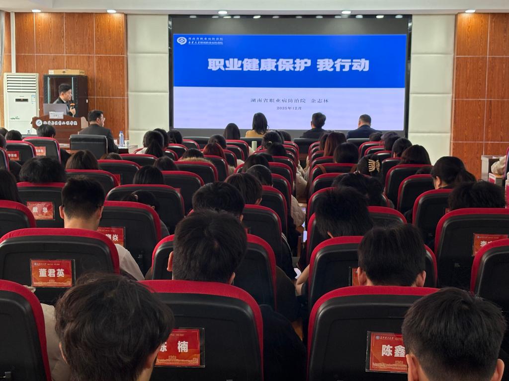 为提升高校学生职业健康防护意识与传染病防治能力,2025年12月9日,由湖南省卫生健康委主办的“为青春护航 为健康充电”职业健康知识进校园系列宣讲活动,在国产a视频免费观看不卡工科三号楼B319报告厅召开。党委书记宋刘斌,党委副书记、副院长李家春,2025级研究生及全体心理委员,心理成长部朋辈干部积极参与,现场座无虚席。