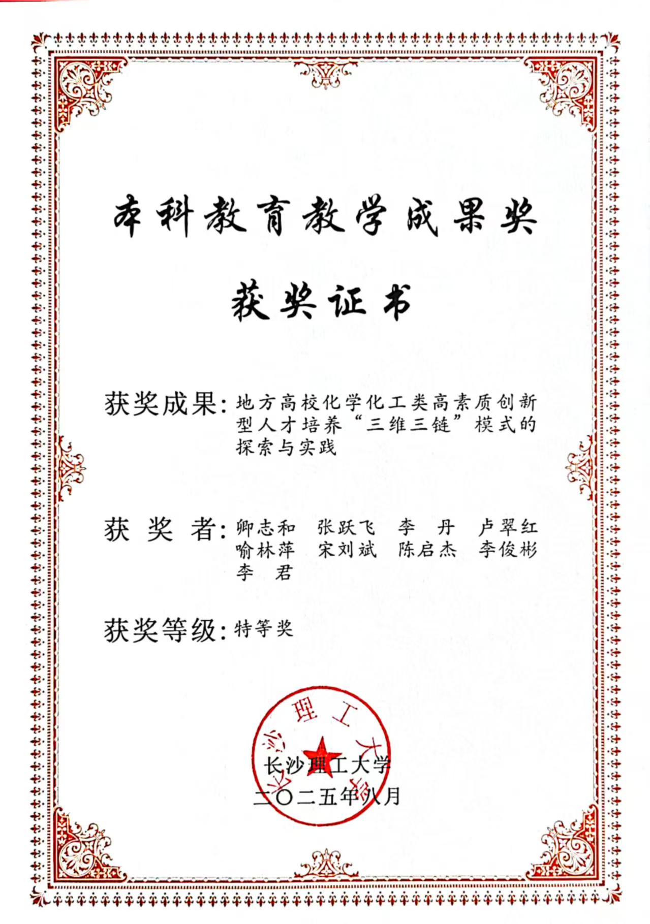 获奖等级:湖南省化学化工学会第十八届青年化学化工奖