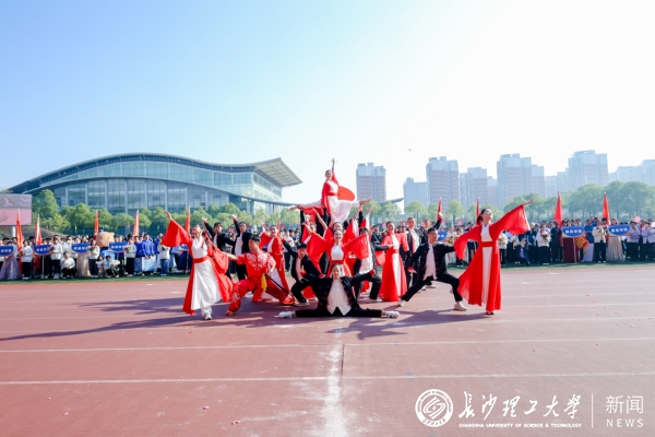 开幕式上,《薪火相传》大型团体操表演以扇为媒、以舞为语,汇成熊熊火炬,象征长理精神生生不息、创新之光熠熠生辉。同学们动作整齐、编排新颖,展现出长理学子昂扬向上的青春风采。教师方阵带来的八段锦表演,让平日里耕耘于三尺讲台的教师们走上绿茵场,以身示范,引领校园健康风尚。由各学院、各分工会基层组织组成的创意方阵精神抖擞、步伐铿锵、口号响亮,为师生们带来了精彩纷呈的创意表演。体育学院的教师们将刚柔并济的长拳、迅疾灵动的咏春、飘逸潇洒的舞剑融合,一招一式尽显深厚功底,将力与美、传统与现代完美融合,赢得了全场师生的阵阵喝彩。